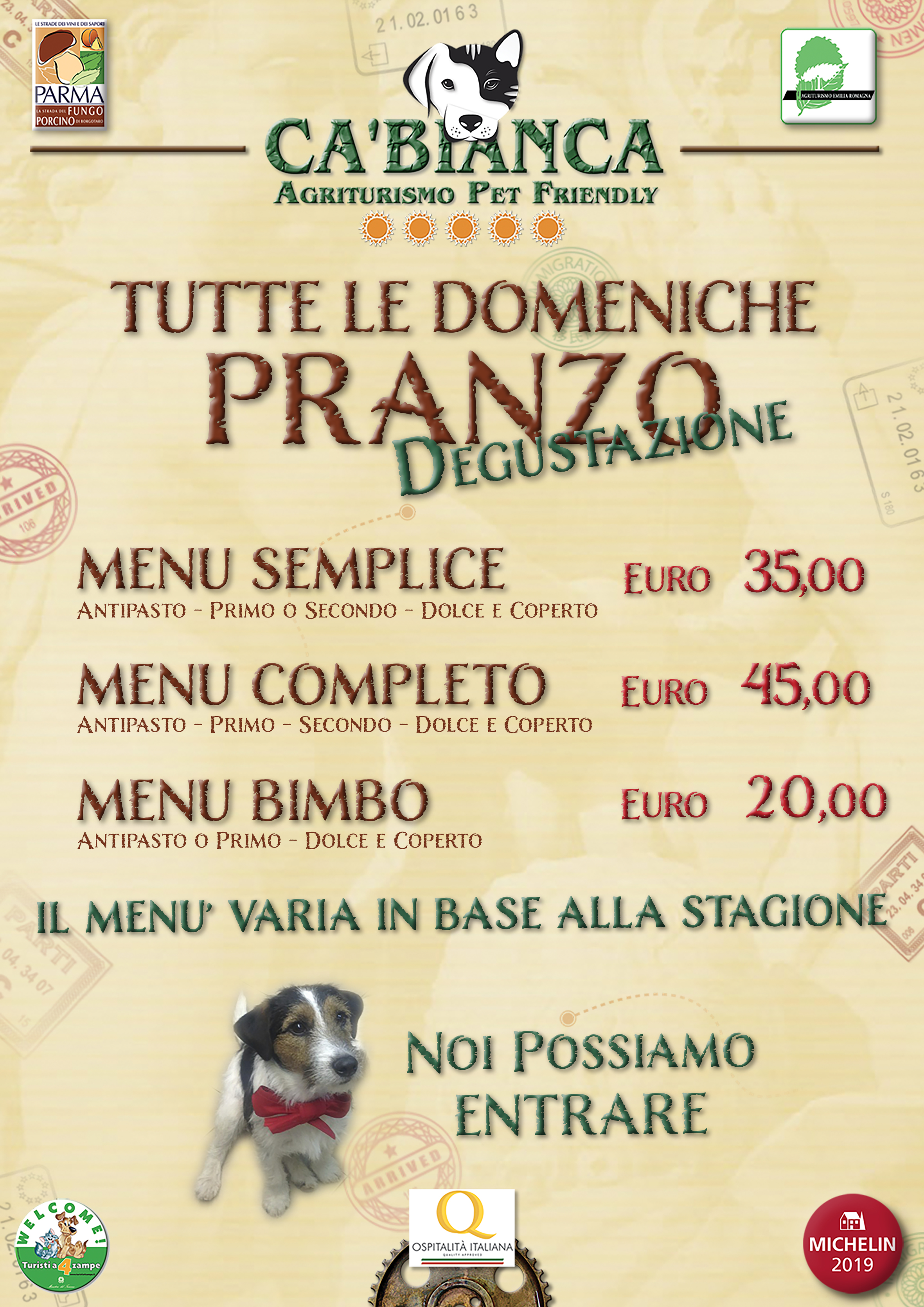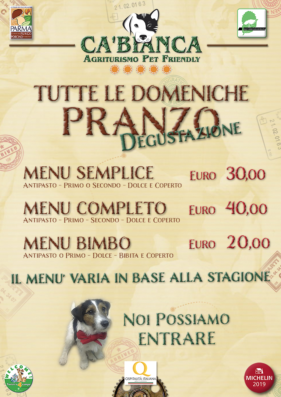 Tra le tante specialità potrete gustare la Torta Fritta con Salumi Nostrani e Stracchino, il Salame Fritto, la Torta di Patate, i Tortelli con Tartufo Nero e di Funghi, Tortelli di Erbette e Fettucine al Ragu di Culatello, il Cinghiale, i Ganassini di Maiale alla Parmigiana, Lo Stracotto al Lambrusco, i Funghi Porcini di Borgotaro, la Pannacream, Le Crostate, La mousse di Ricotta e moltissime altre prelibatezze.